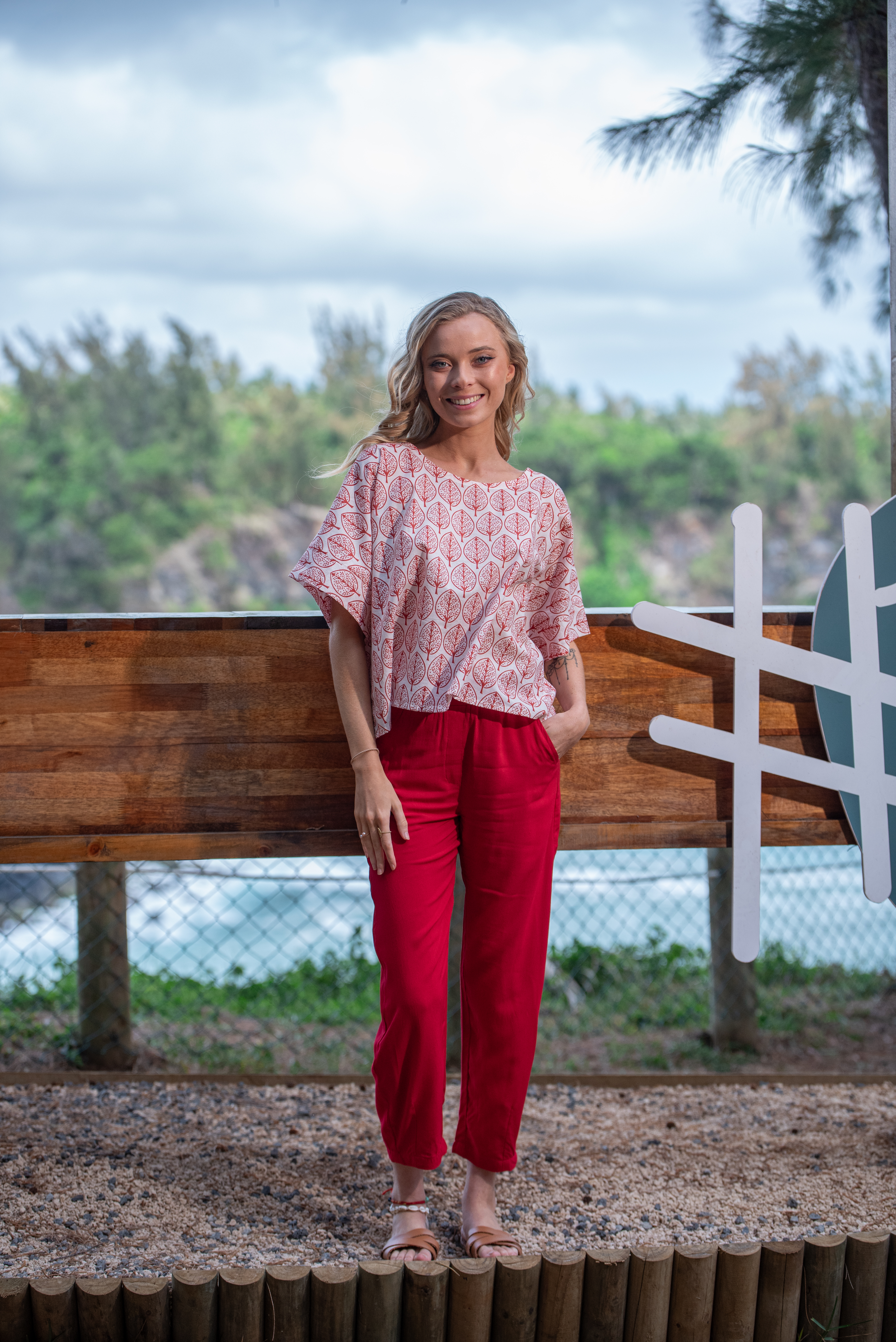 Get ready for the season with our Beau Top, a free-size kaftan top crafted from block-printed cotton voile in a striking red and white pattern. Perfect for Christmas festivities, this lightweight and stylish top brings holiday cheer to your wardrobe with ease.