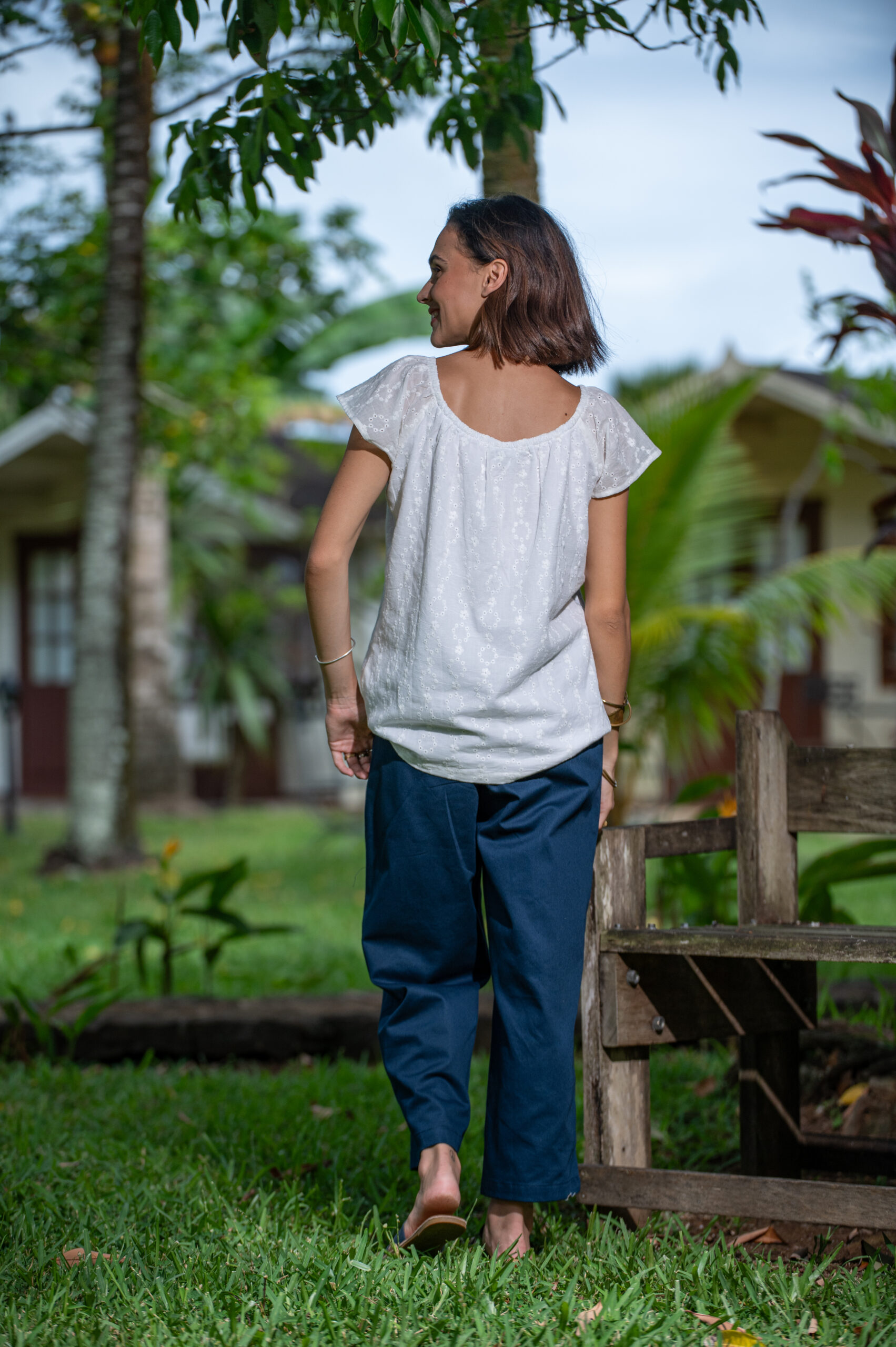 Elevate your style with the Carmen Top featuring elegant short sleeves. This dreamy top pairs perfectly with the Gypsy skirt or the navy Fidou Pants.