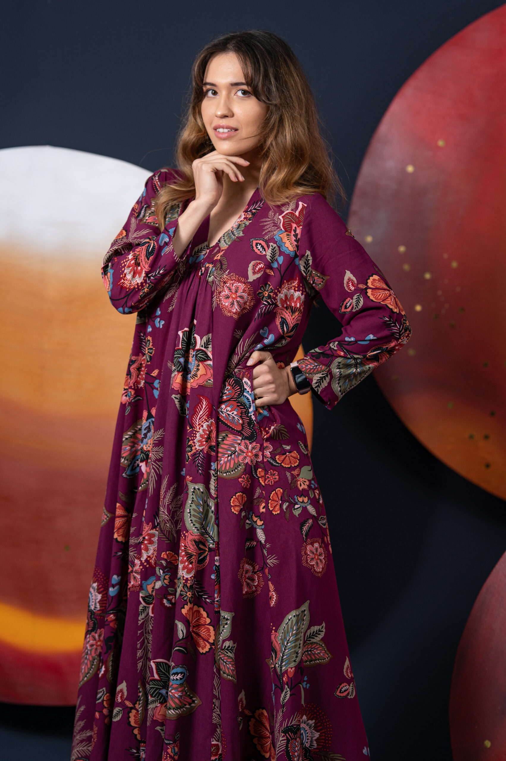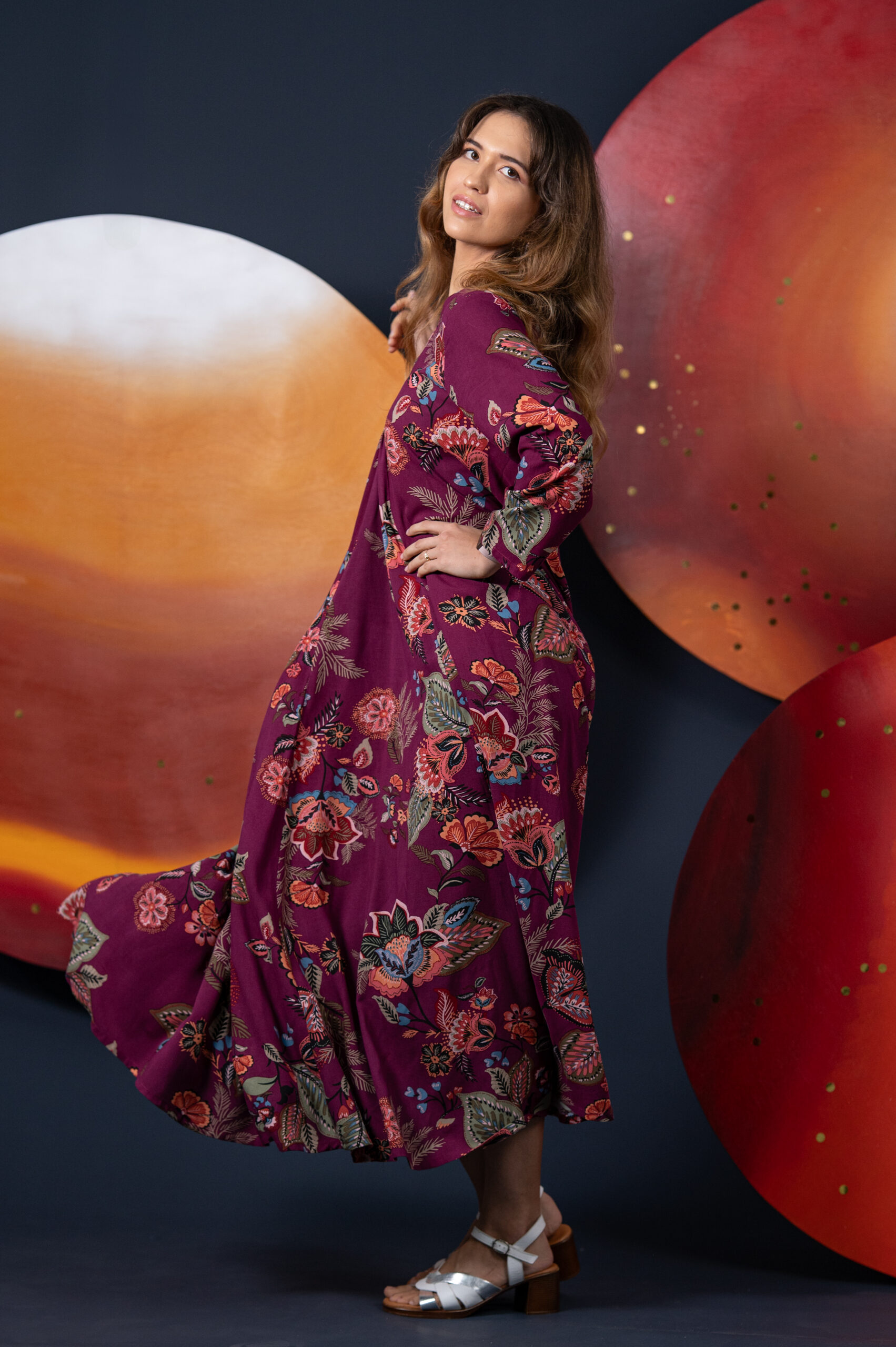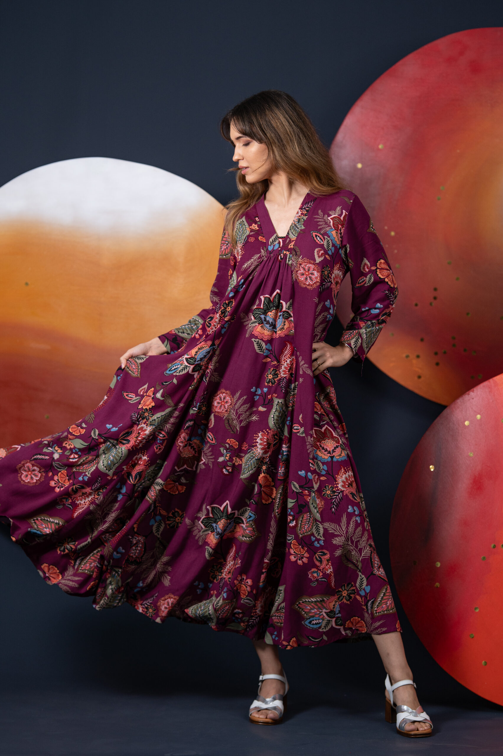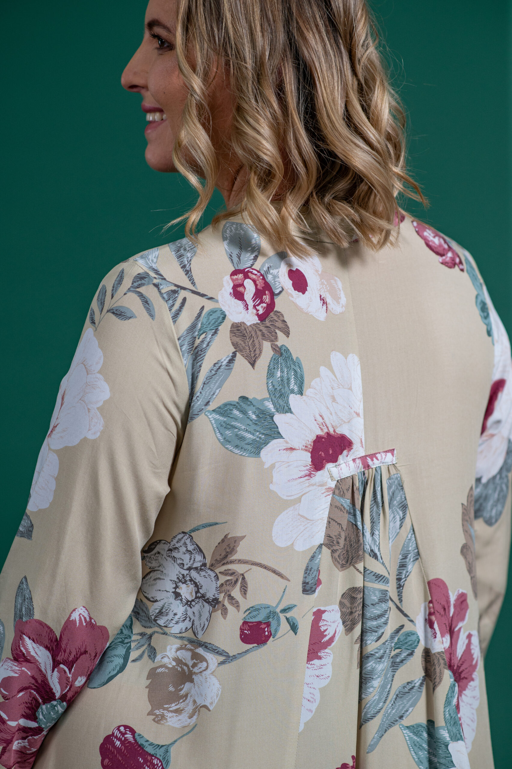 The Carolyne Dress is a long, flowy maxi crafted in a soft floral fabric. Featuring a V-neckline with a neckband, elegant panel detailing, and practical pockets, it’s designed to offer both ease and grace. A timeless piece that moves with you — naturally.