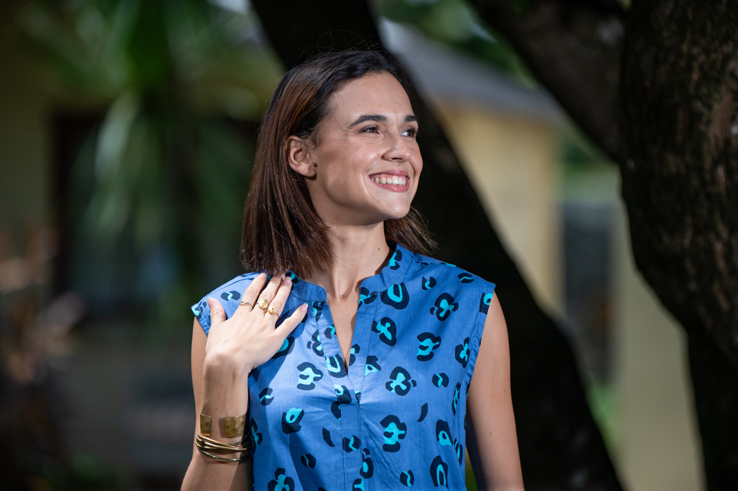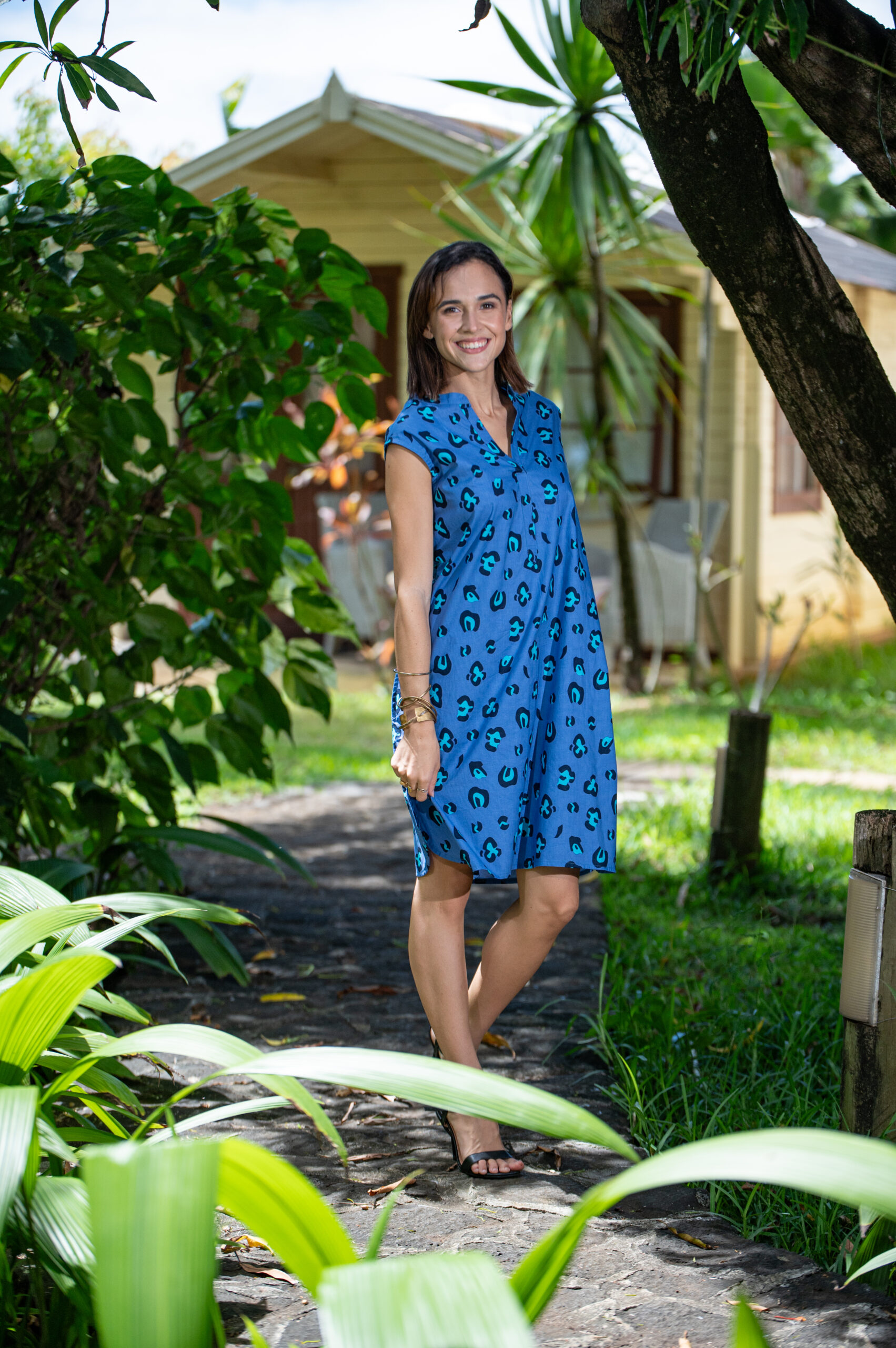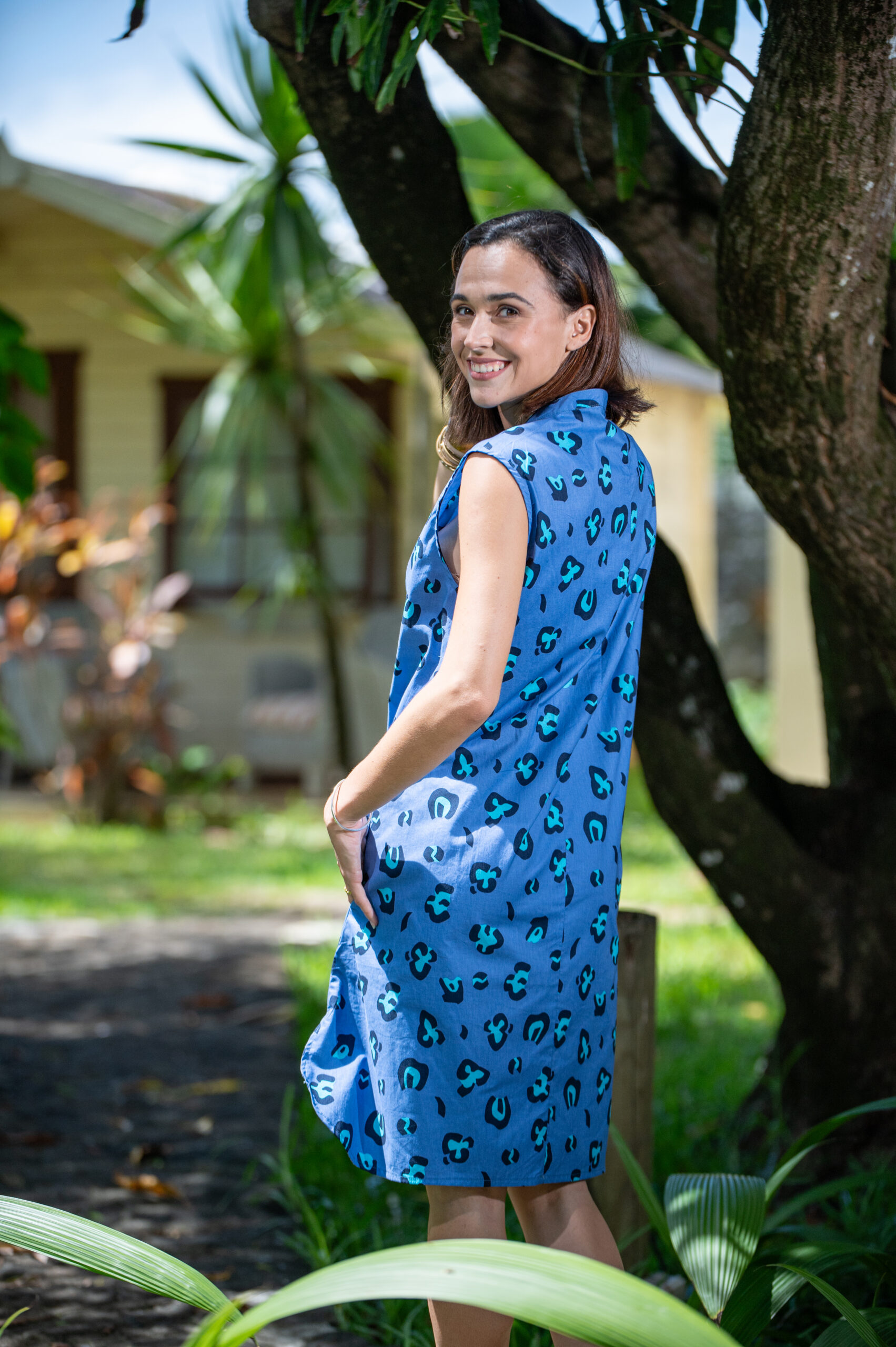 | Color | blue with abstract print |