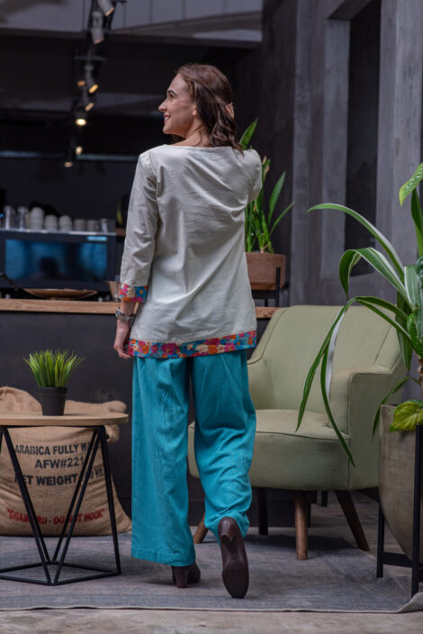 Light, comfortable, and effortlessly chic — a versatile piece that pairs beautifully with shorts, pants, or skirts for an easy summer look.