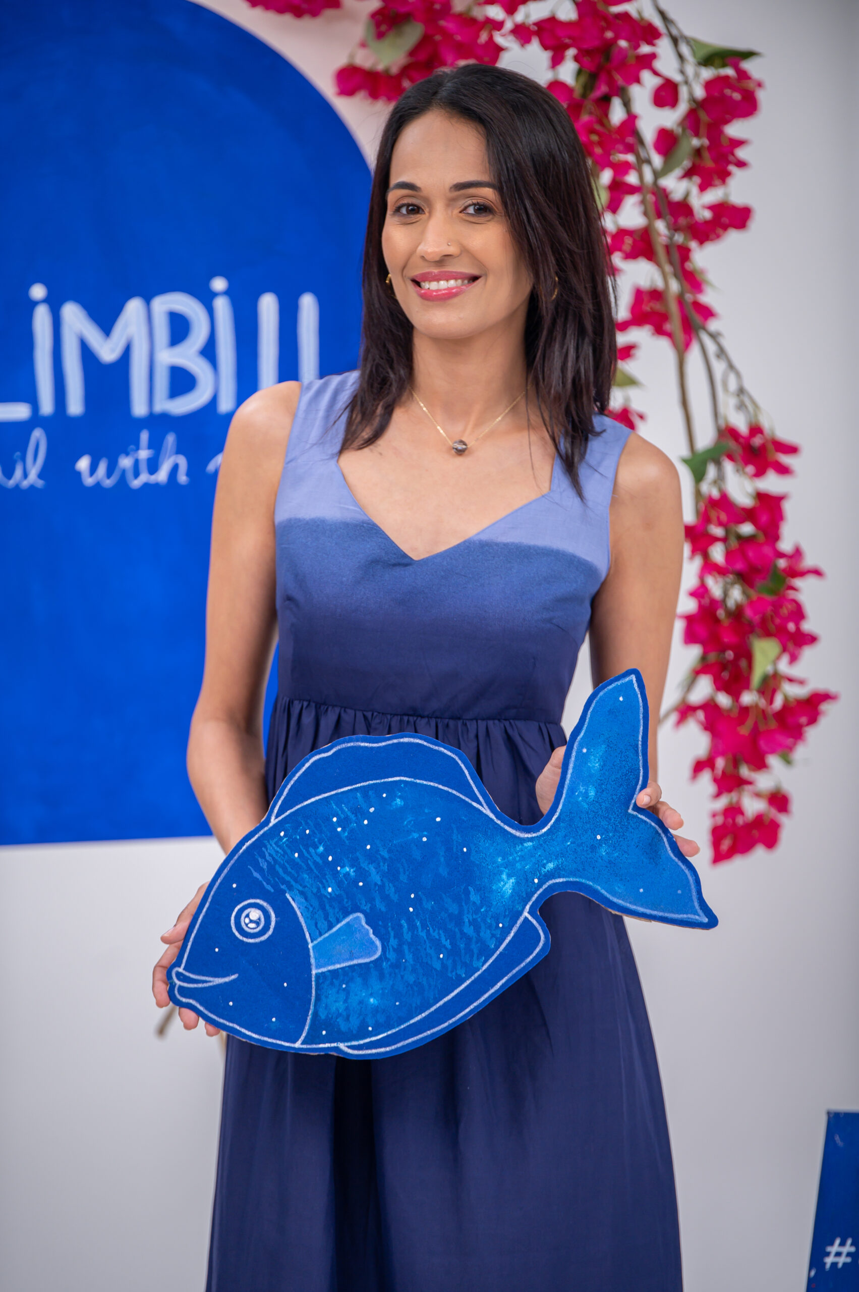 navy blue ombré, sky blue with fuchsia floral print