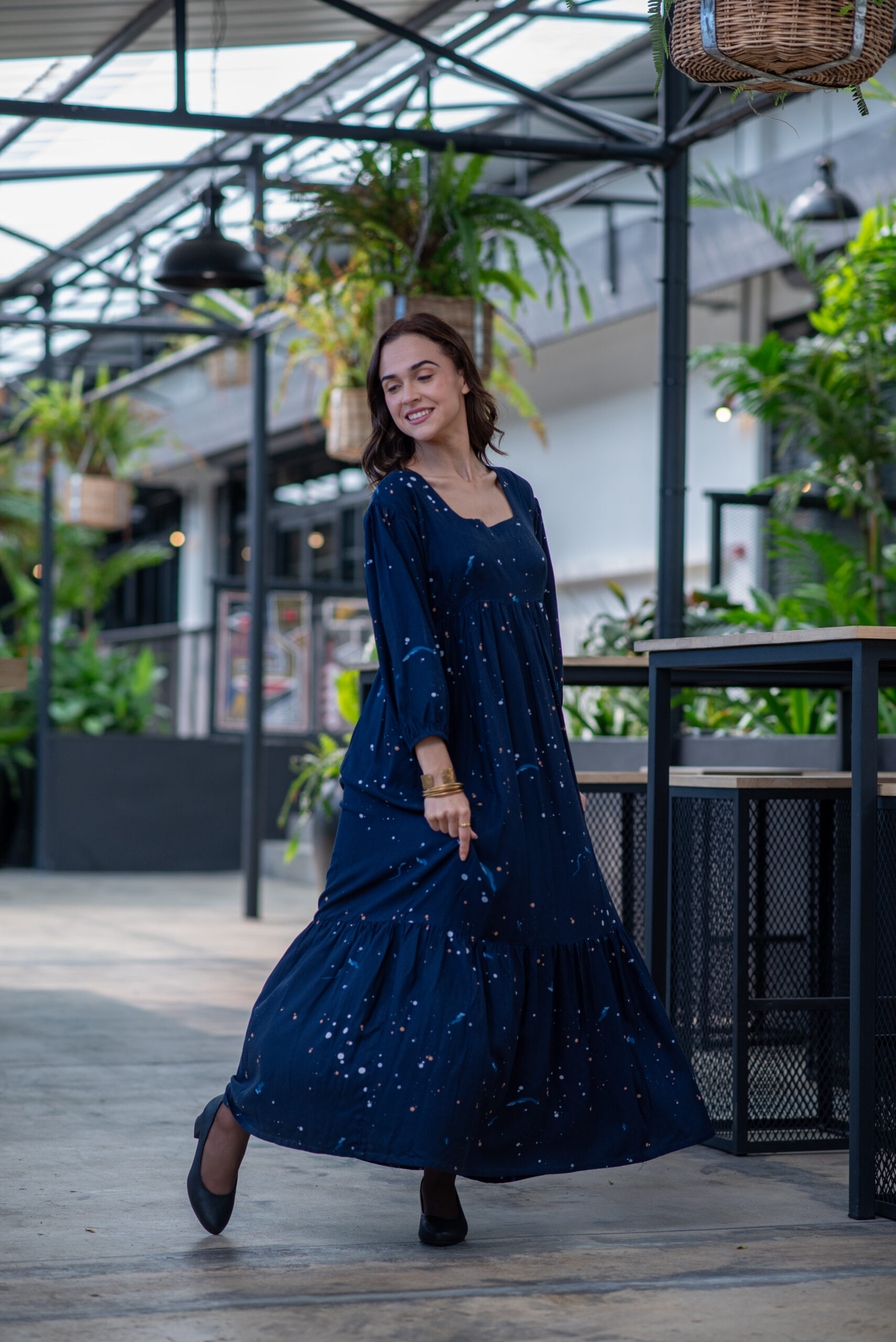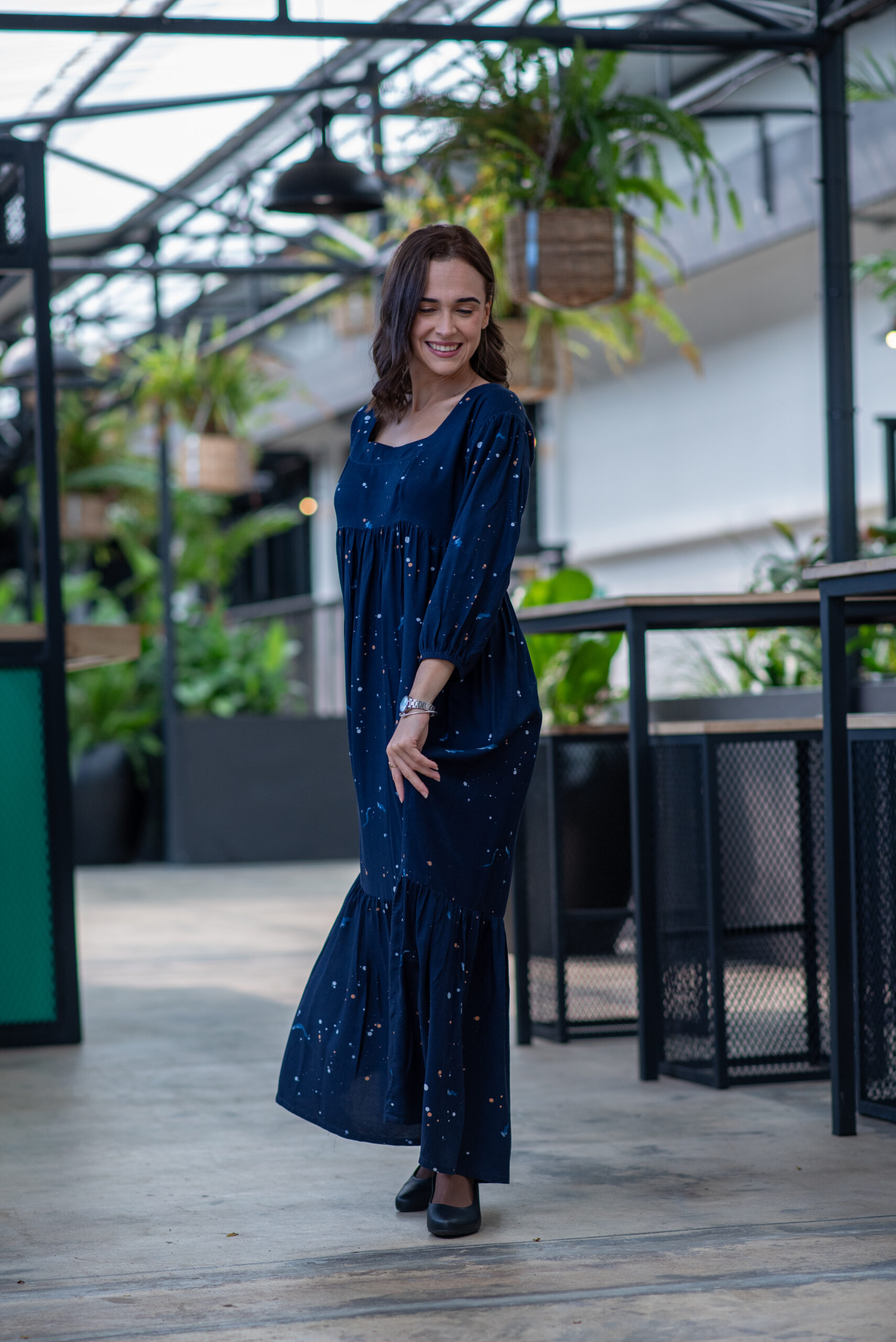 Discover the elegant Louisa Maxi Dress from our Winter Collection! This stunning dress features a high waist with tiers, long sleeves, and a captivating navy blue abstract print. Perfect for any winter occasion, the Louisa Maxi Dress combines sophistication and comfort effortlessly.