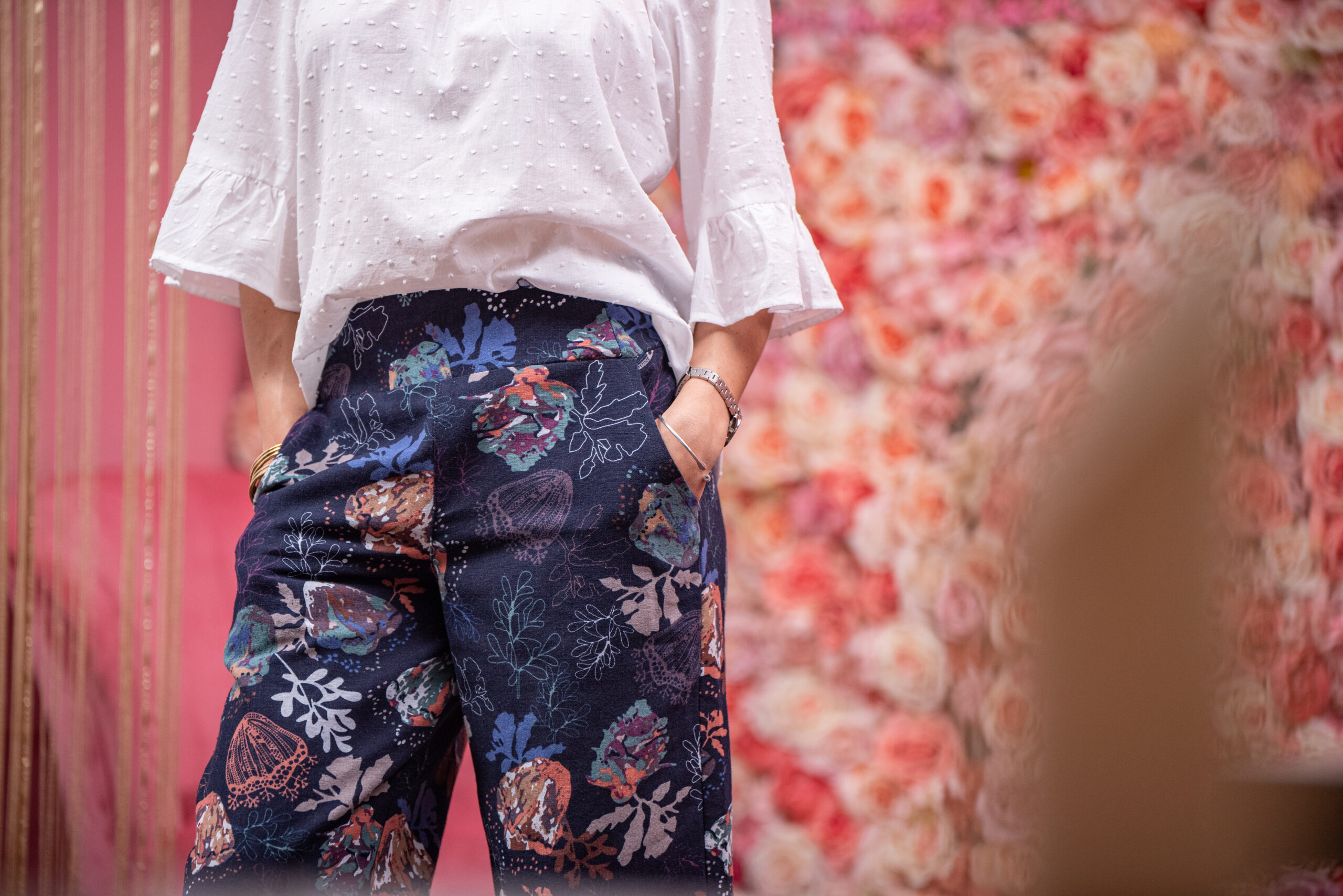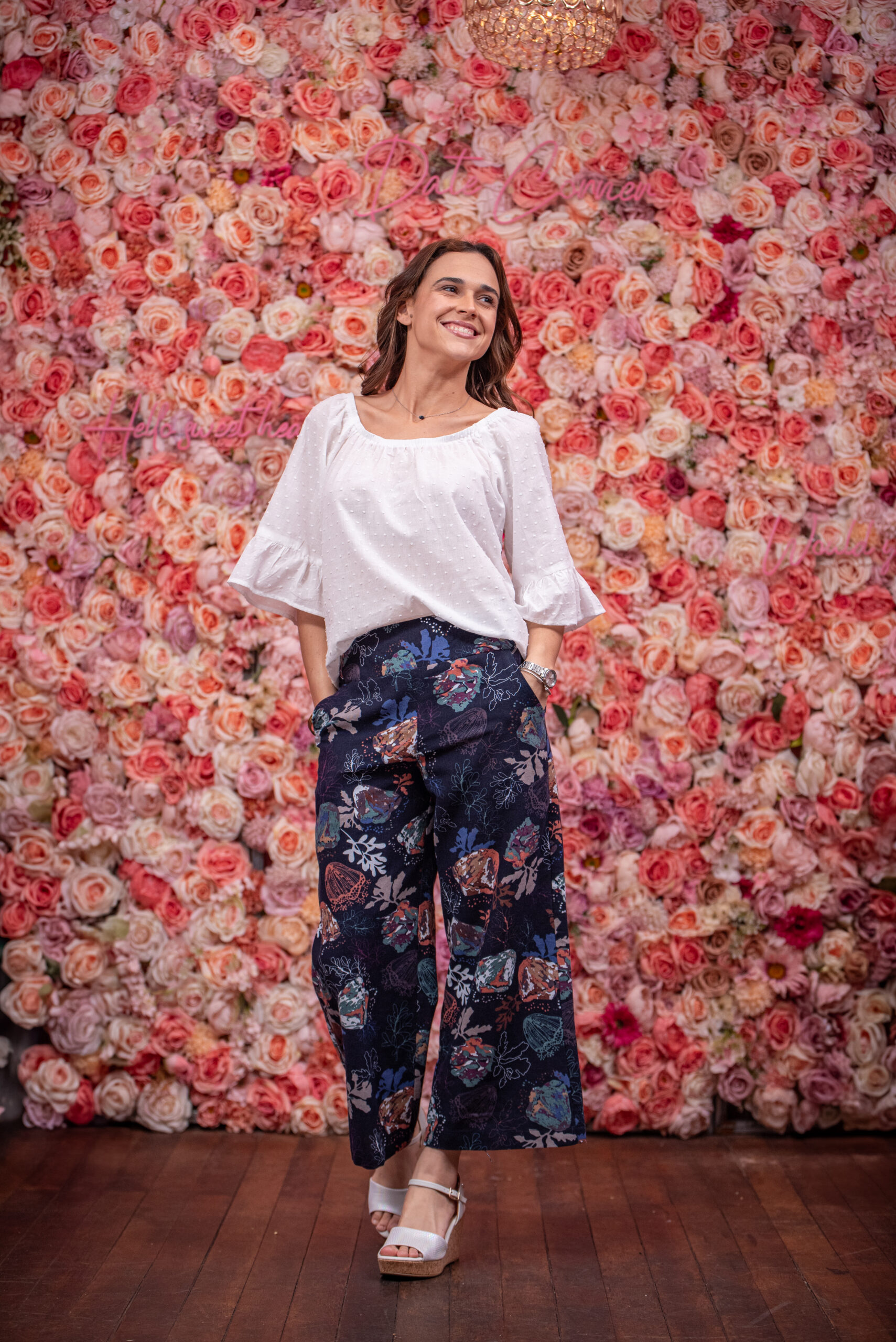 The Carmen Top pairs with the marine print Fidou Pants for a sophisticated yet relaxed look that’s perfect for any occasion.