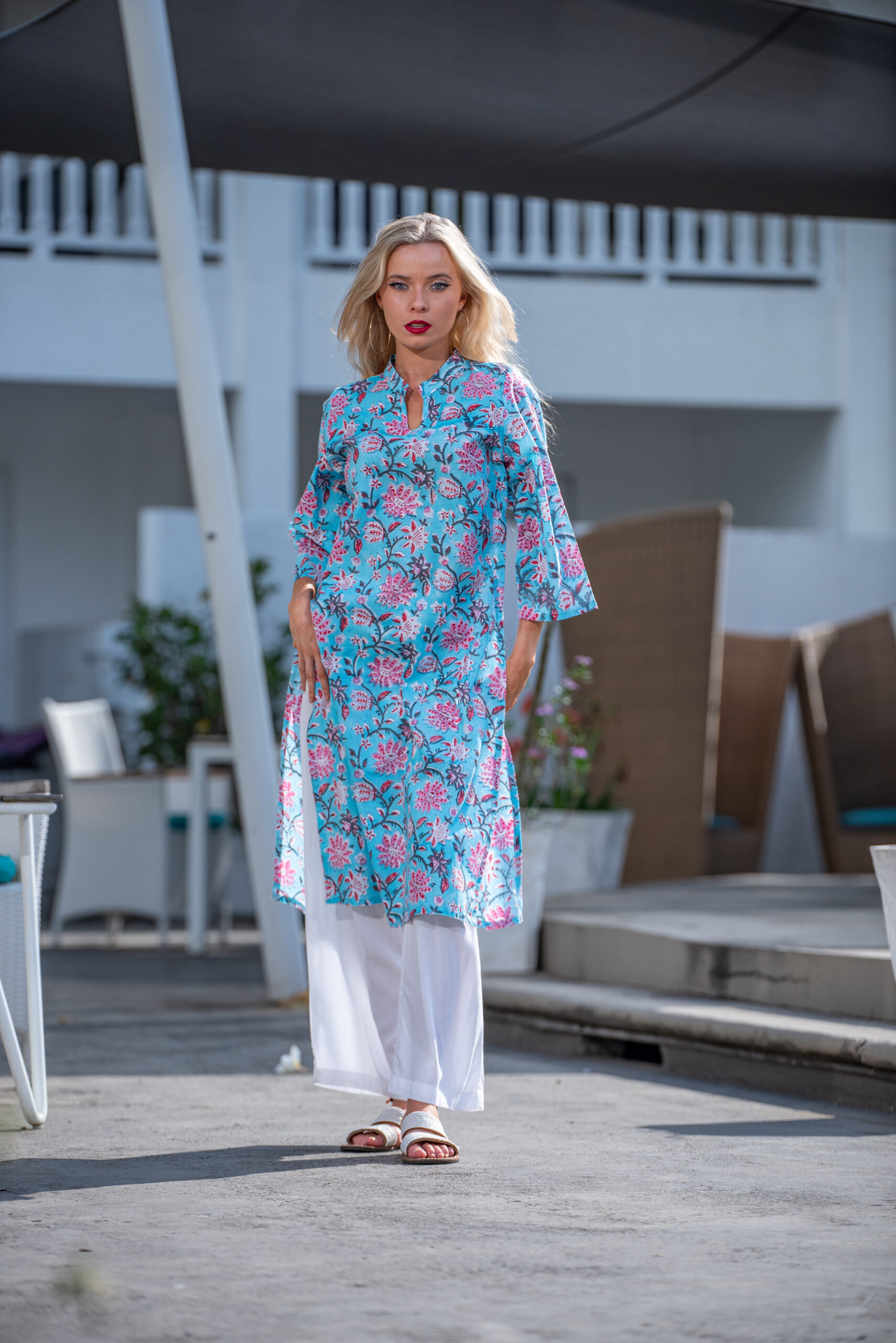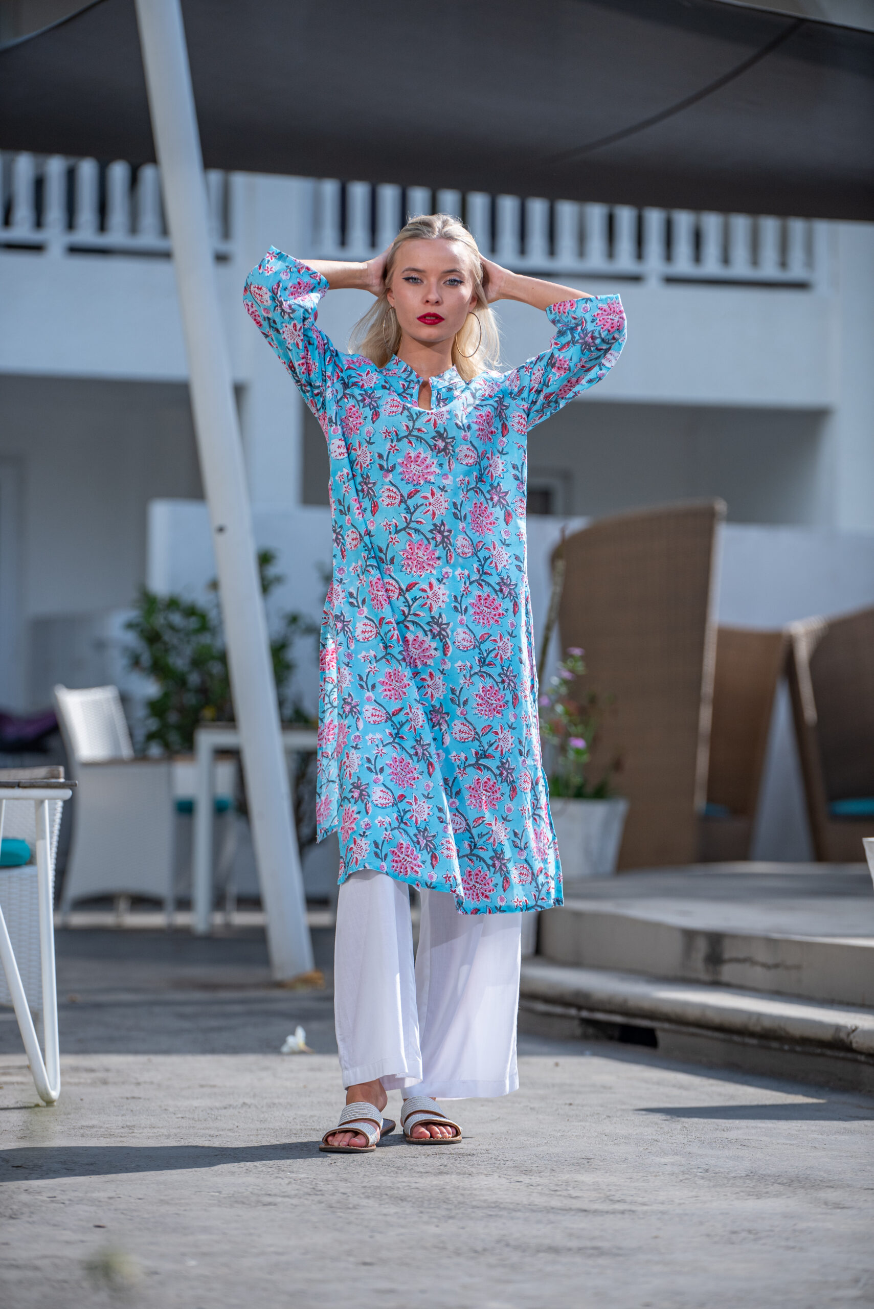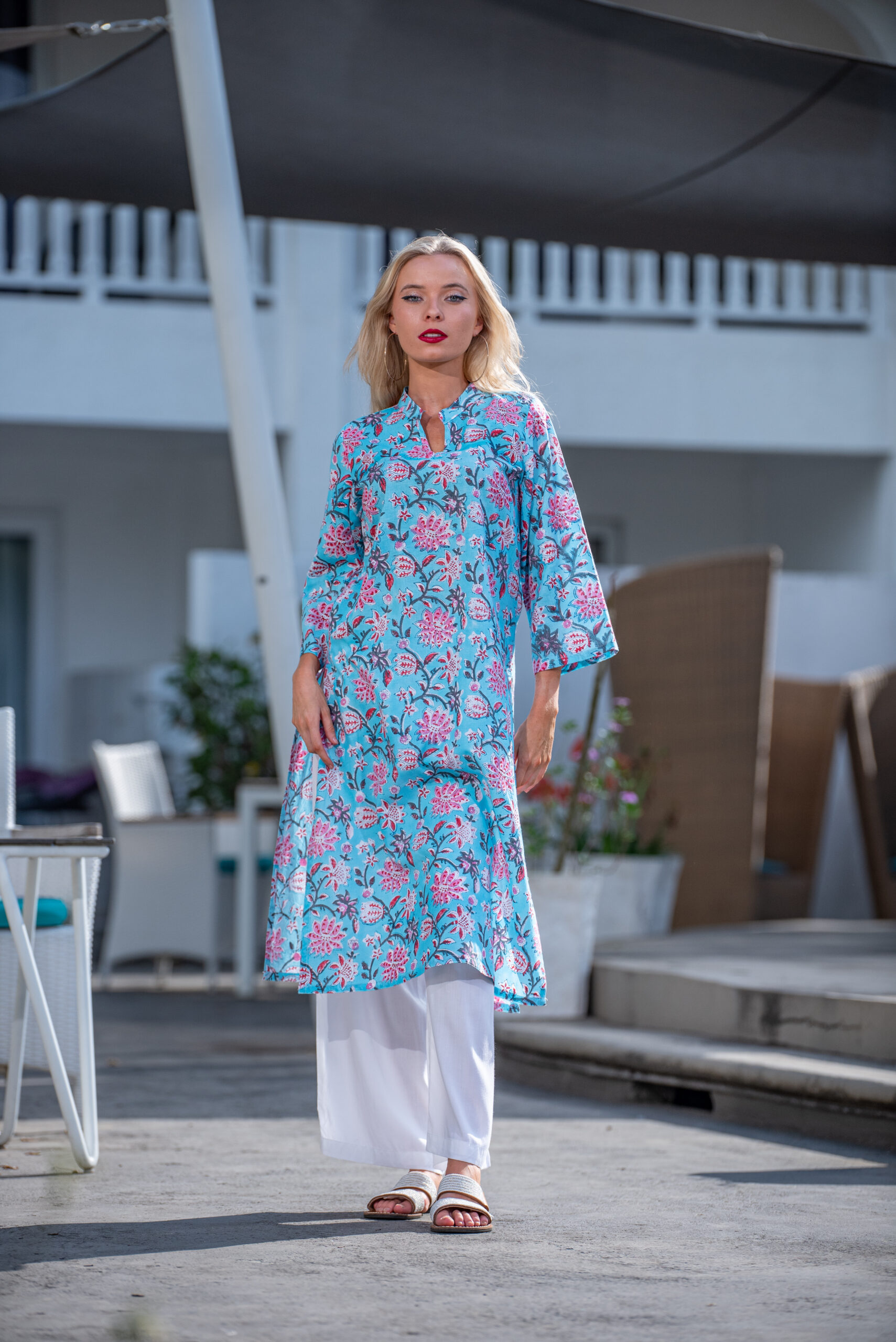 Our kurtas come with a twist of fun and style! Crafted from stunning block-printed fabrics, the Hanna Kurta features three-quarter sleeves and a chic mandarin collar. Pair it with your favourite leggings or square pants for a look that’s effortlessly stylish.