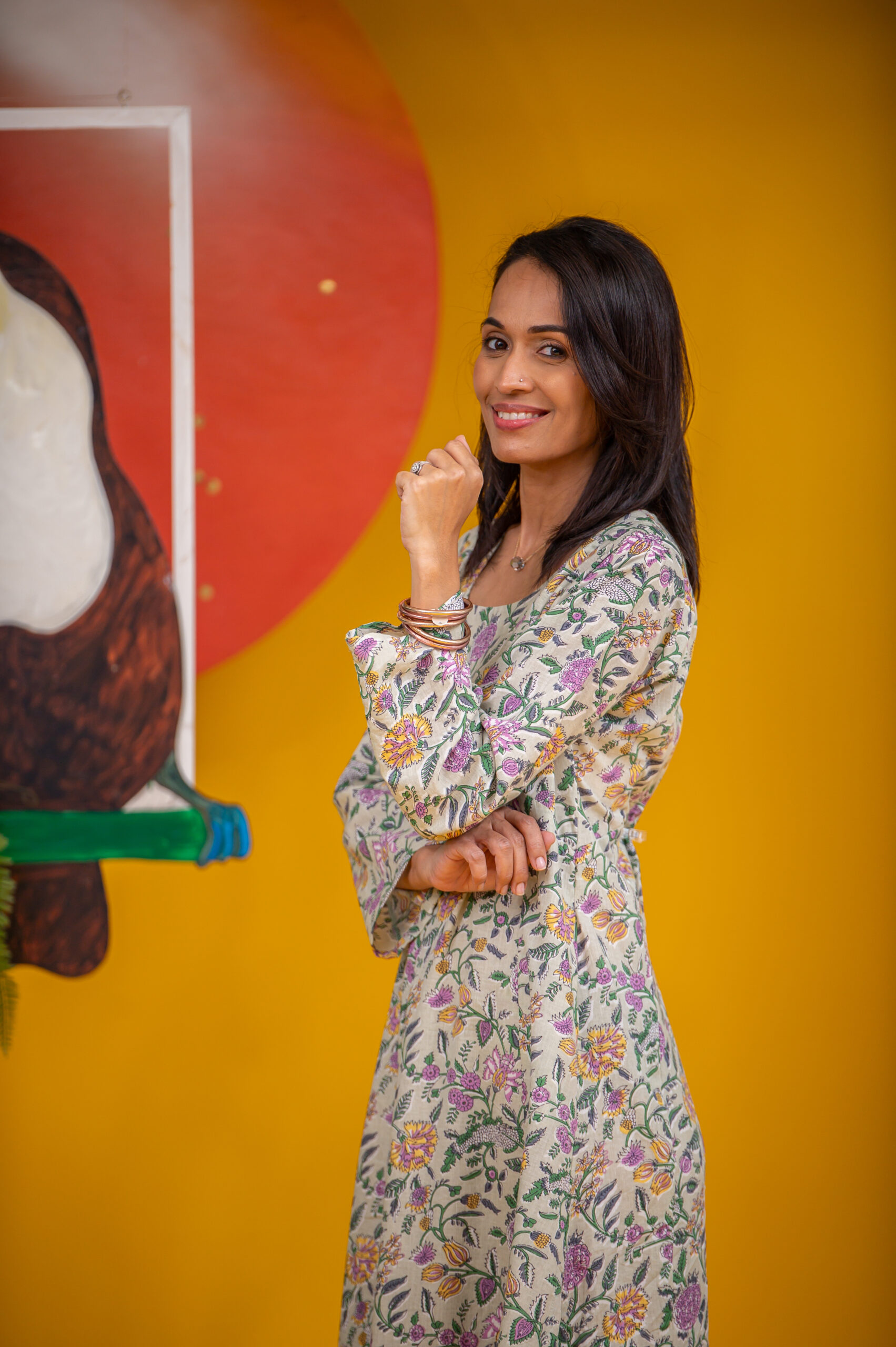 | Color | green with floral block print |