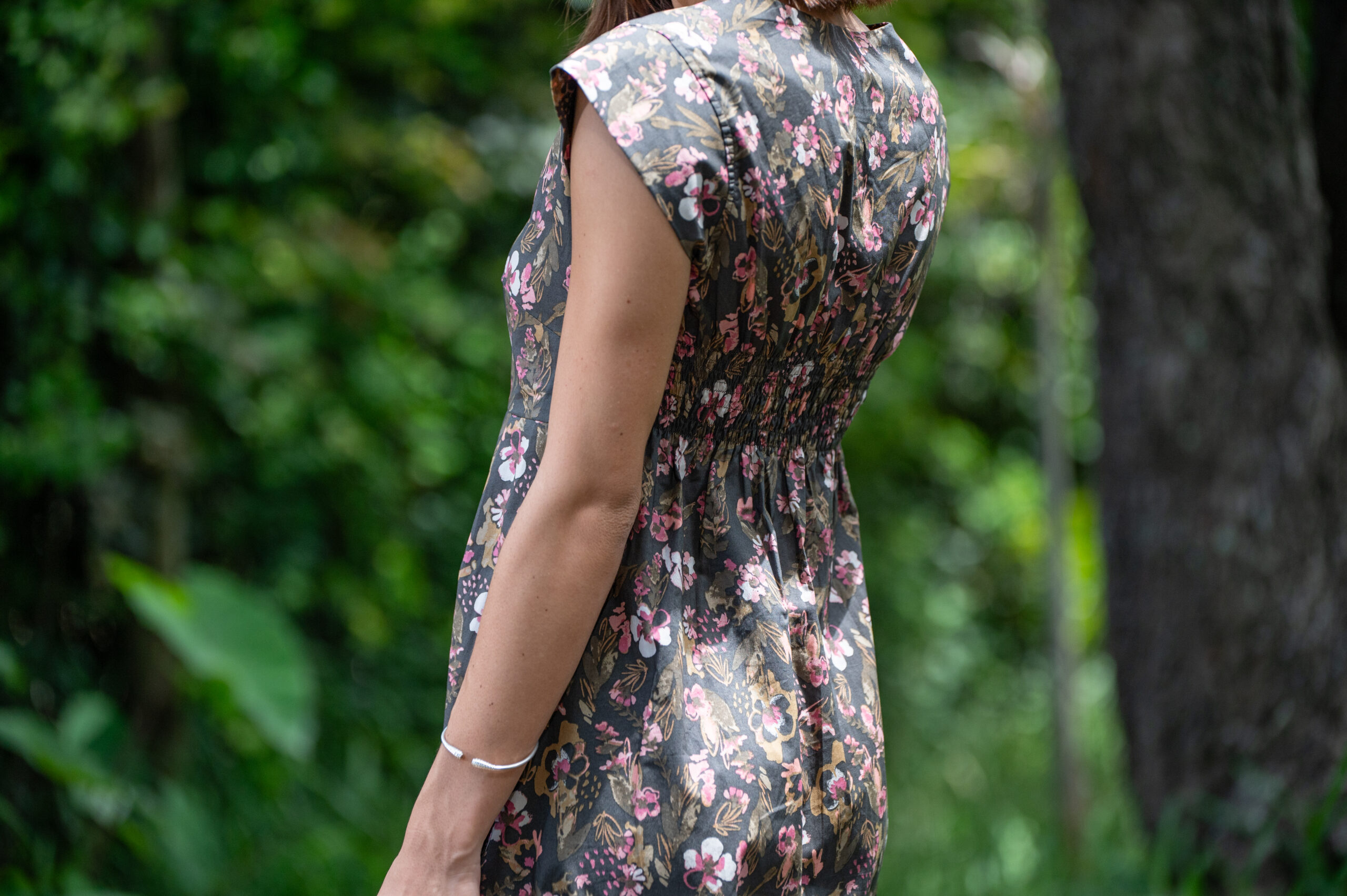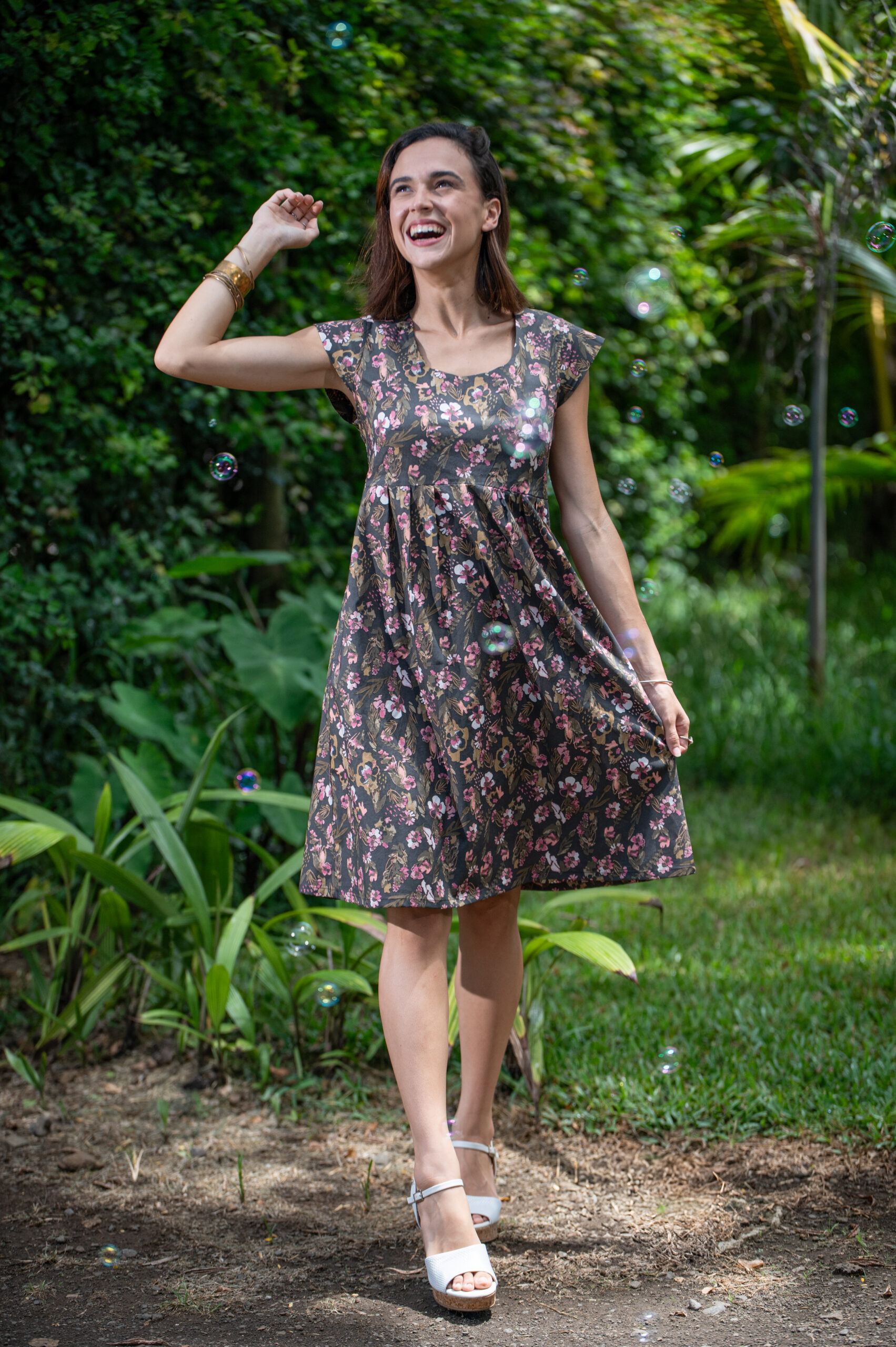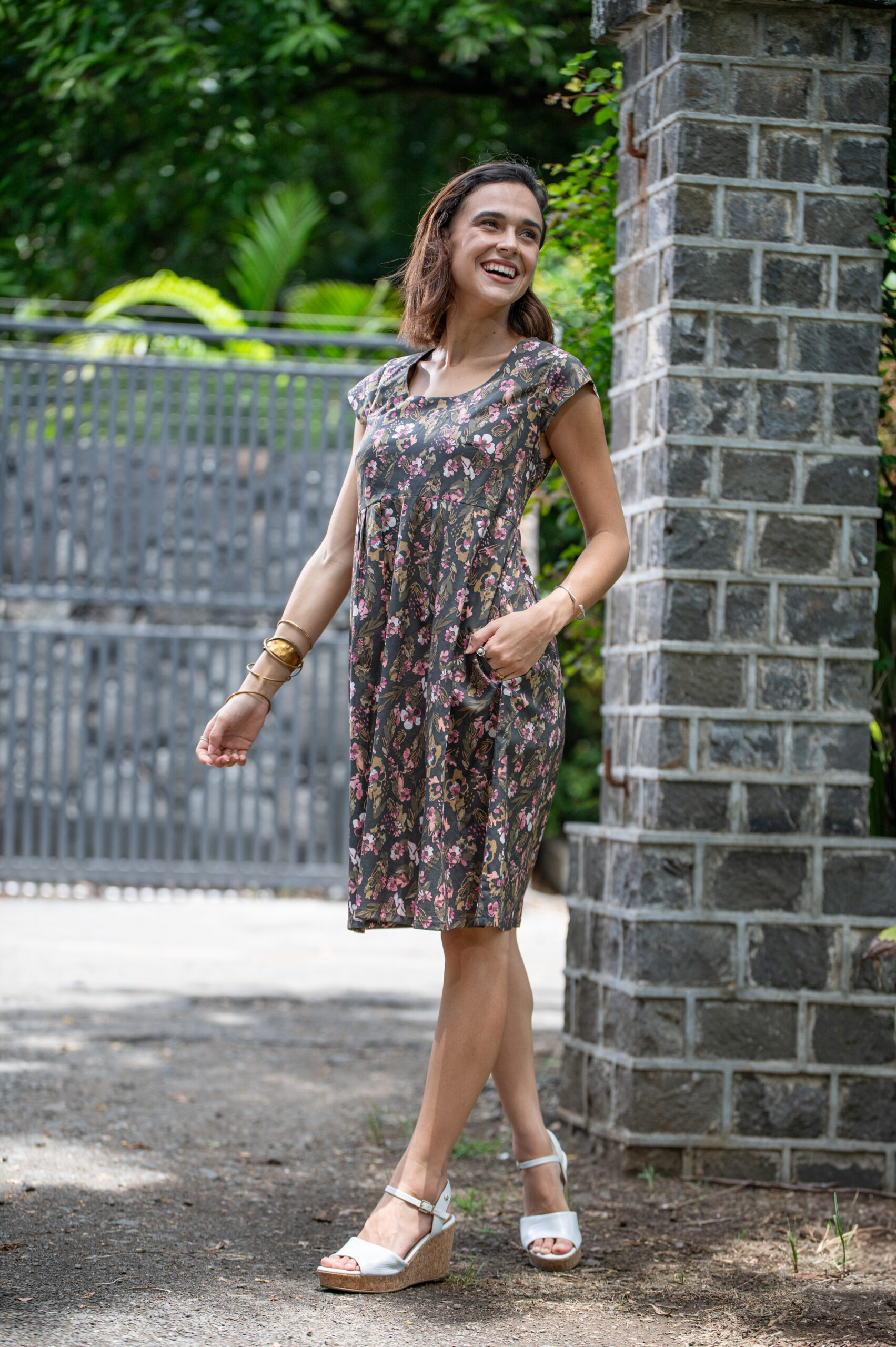 The Wendy dress is all about quiet charm — clean lines at the front, shirring at the back, and pockets for everyday ease.